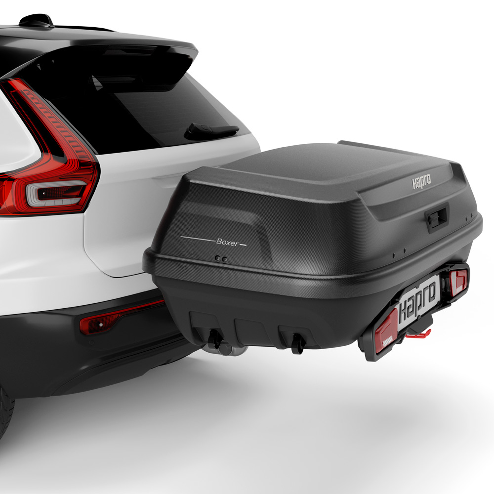 Автомобильный бокс на фаркоп Hapro Boxer L 420 Hexagon black, черный