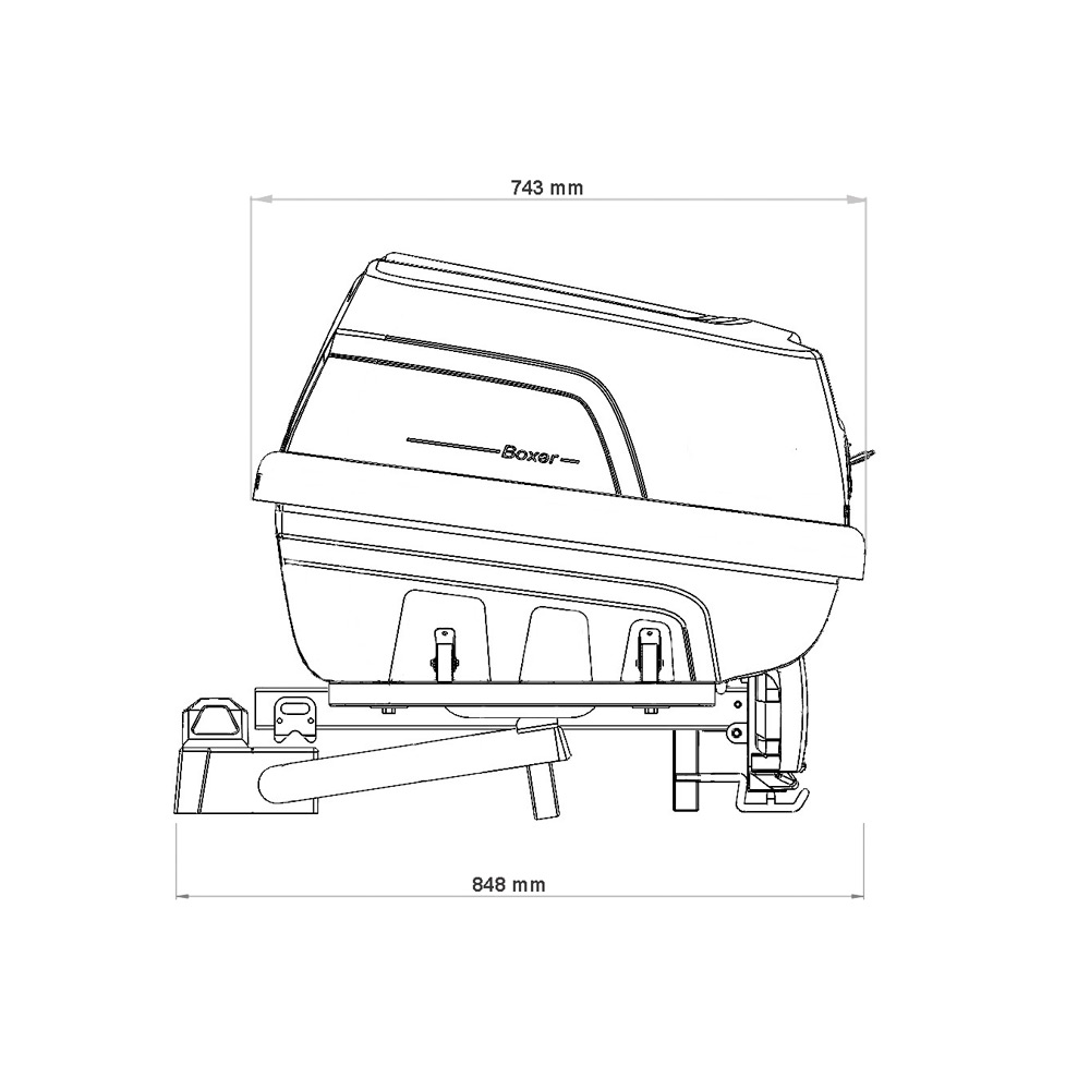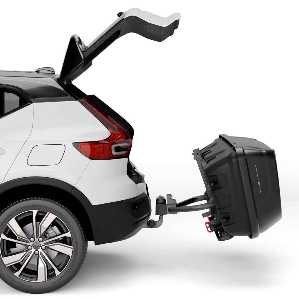 Платформа, на которую устанавливается бокс, снабжена функцией наклона (угол 760) для беспрепятственного доступа к багажнику автомобиля.